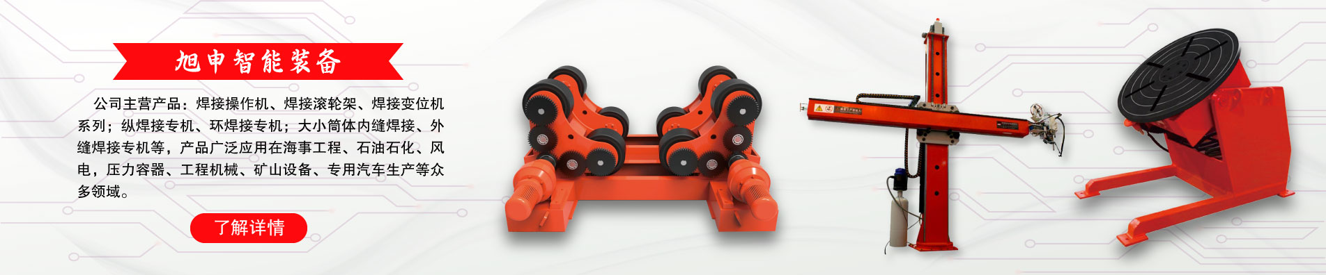 作為焊接自動(dòng)化裝備與涂裝設(shè)備的專業(yè)制造商,旭申公司始終堅(jiān)持“細(xì)節(jié)決定成敗,誠(chéng)信鑄就未來”的經(jīng)營(yíng)理念,做一流產(chǎn)品,創(chuàng)一流品牌。 旭申裝備將攜手旭申石化、旭申農(nóng)業(yè)等關(guān)聯(lián)公司一道,產(chǎn)業(yè)報(bào)國(guó)、造福社會(huì),為新時(shí)代的裝備制造、節(jié)能環(huán)保做出應(yīng)有的貢獻(xiàn)。